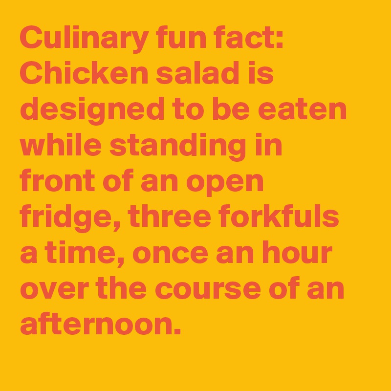 - Culinary Fun Fact Chicken Salad Is Designed To Be Eaten While Standing In Front Of An Open Fridge Three Forkfuls A Time Once An Hour Over The Course Of An Afternoon