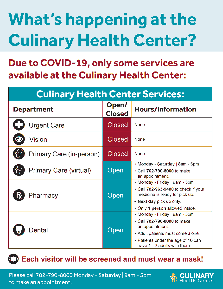 Culinary Health Center On Twitter The Culinary Pharmacy At The Culinary Health Center Will Reopen On July 6 Before You Visit The Pharmacy Please Call 702 963 9400 To Make Sure Your Medicine Is Recipes I Can Make